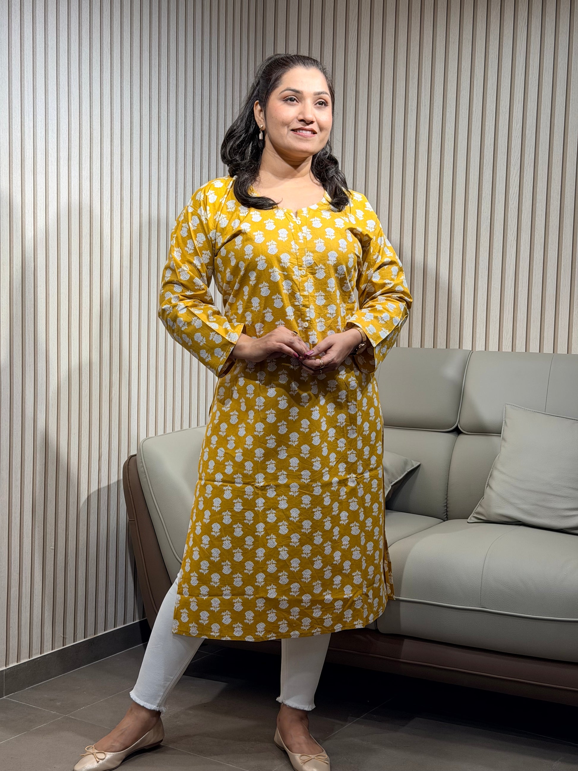 Sunshine Yellow Printed Kurti